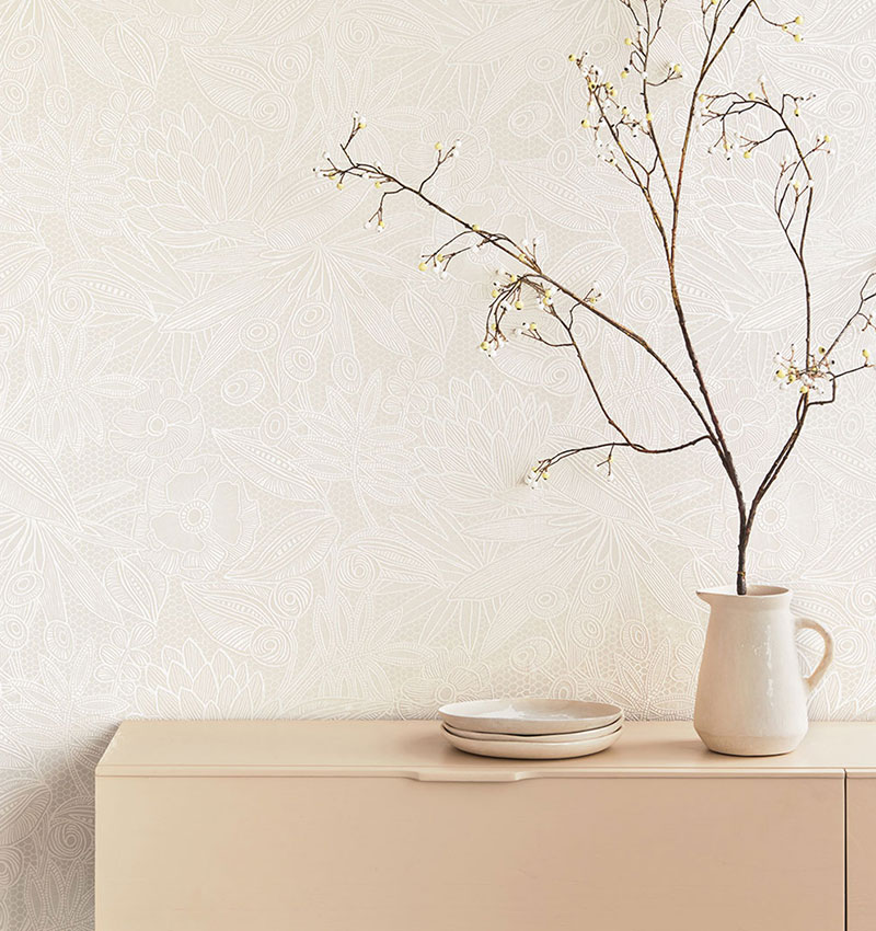 Vyberte si bílé tapety s jemným, nenápadným vzorem. Jemné vzory mohou dodat hloubku a texturu, aniž by místnost opticky zmenšovaly.