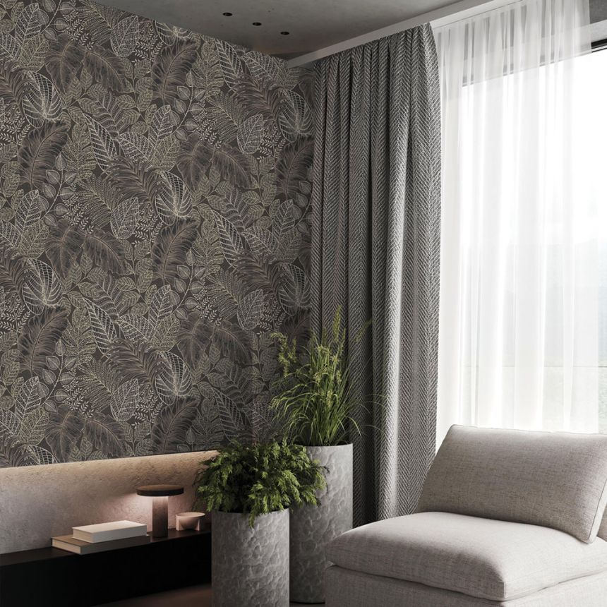 Černá vliesová tapeta na zeď, listy, A71103, Vavex 2026 Černá vliesová tapeta na zeď, listy, A71103, Vavex 2026