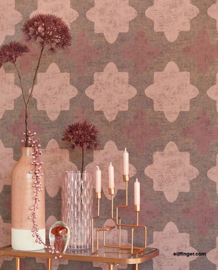 Purpurová vliesová geometrická retro tapeta na zeď, 333655, Revive, Eijffinger Purpurová vliesová geometrická retro tapeta na zeď, 333655, Revive, Eijffinger
