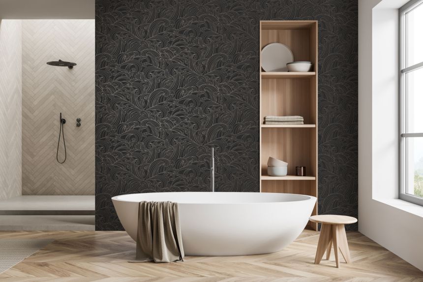 Vliesová tapeta na zeď, černo-okrová, textura, vlny, 82496, Naomi, Novamur Vliesová tapeta na zeď, černo-okrová, textura, vlny, 82496, Naomi, Novamur