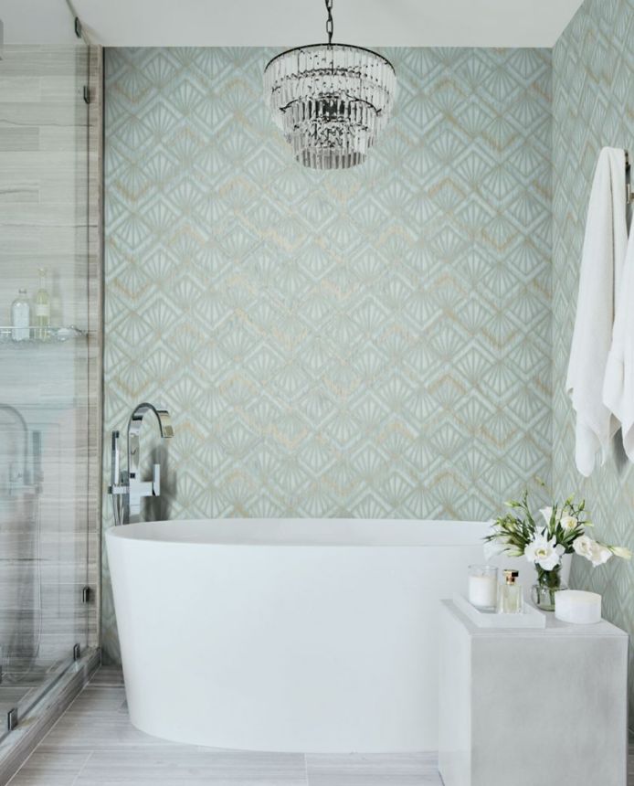 Vliesová tapeta na zeď, tyrkysová, 3D efekt obložení, 347813, 3D Reflections, Origin Vliesová tapeta na zeď, tyrkysová, 3D efekt obložení, 347813, 3D Reflections, Origin