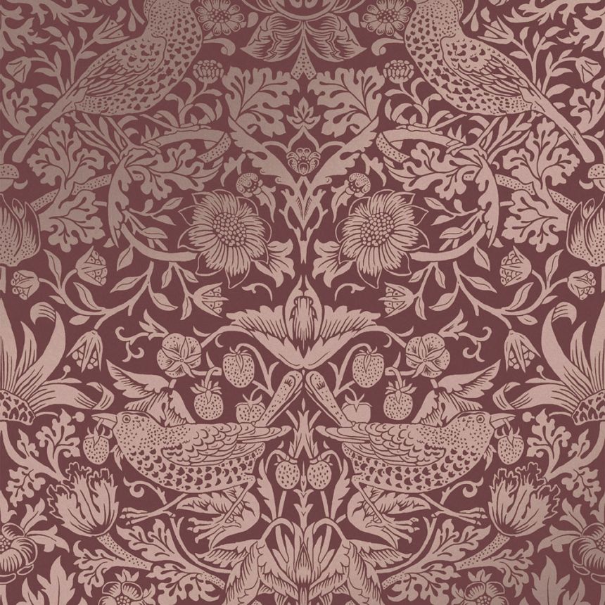 Vliesová tapeta na zeď, vínová, květiny, ptáci, 124235, William Morris At Home Vliesová tapeta na zeď, vínová, květiny, ptáci, 124235, William Morris At Home