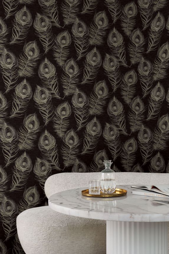 Vliesová tapeta na zeď, černo-zlatá, ptáci, 34532, Kumano, Marburg Vliesová tapeta na zeď, černo-zlatá, ptáci, 34532, Kumano, Marburg