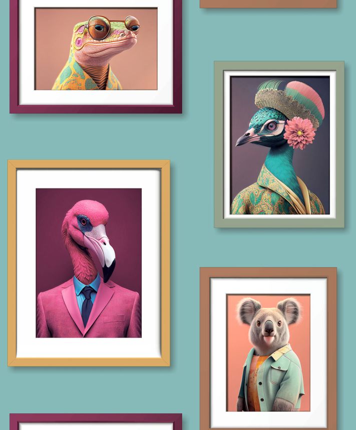 Vliesová tapeta na zeď, tyrkysová, rámečky, zvířata, M76104, Artifice, Ugépa Vliesová tapeta na zeď, tyrkysová, rámečky, zvířata, M76104, Artifice, Ugépa