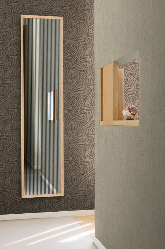 Hnědá vliesová tapeta na zeď s vinylovým povrchem, Listy 31805, Textilia, Limonta Hnědá vliesová tapeta na zeď s vinylovým povrchem, Listy 31805, Textilia, Limonta