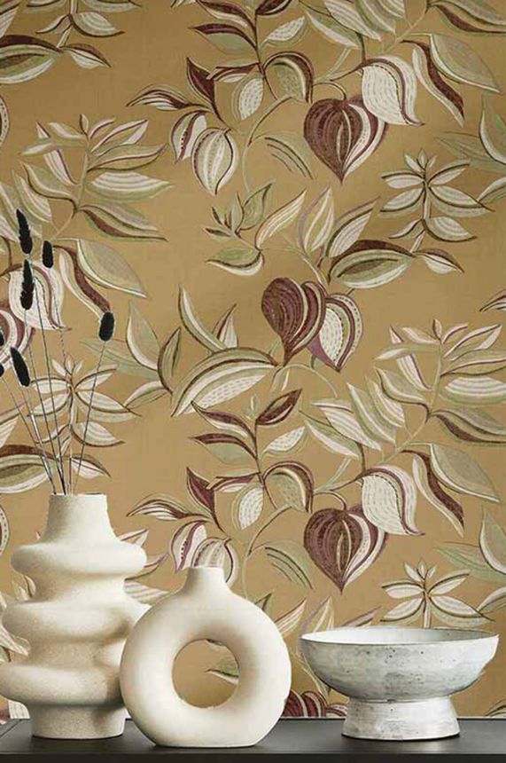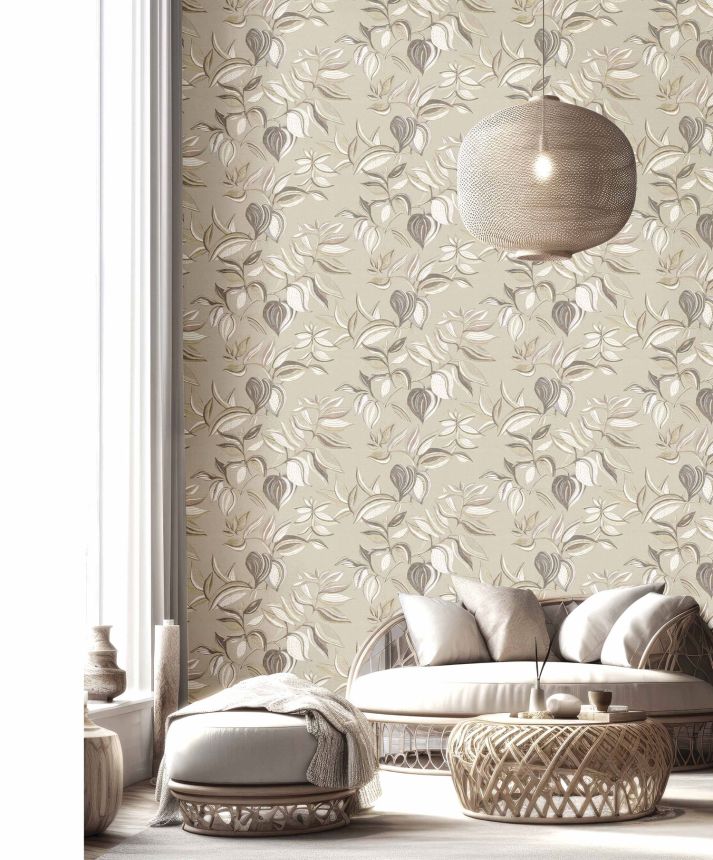 Hnědá vliesová tapeta na zeď, listy trávy,  26409, Thai, Cristiana Masi by Parato Hnědá vliesová tapeta na zeď, listy trávy,  26409, Thai, Cristiana Masi by Parato