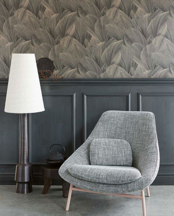 Hnědo-černá vliesová tapeta na zeď,  listy, 340126, Gilded, Eijffinger Hnědo-černá vliesová tapeta na zeď,  listy, 340126, Gilded, Eijffinger