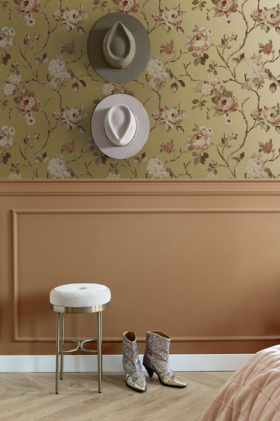 Květinová vliesová tapeta na zeď, zlatá, 139762, Bloom, Esta Home Květinová vliesová tapeta na zeď, zlatá, 139762, Bloom, Esta Home