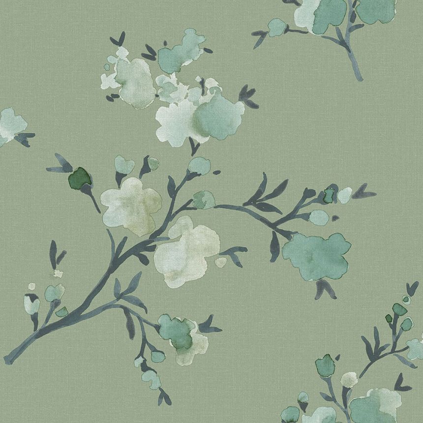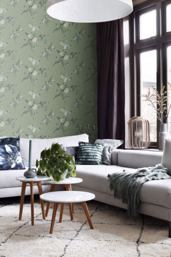 Vliesová tapeta na zeď zelená s rozkvetlými větvičkami 148718, Blush, Esta Home Vliesová tapeta na zeď zelená s rozkvetlými větvičkami 148718, Blush, Esta Home