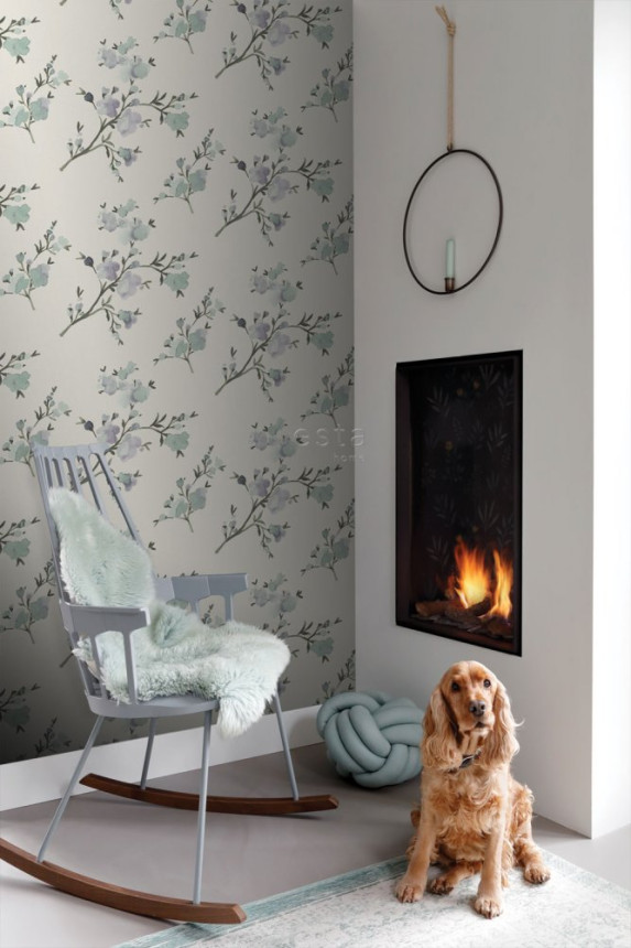 Vliesová tapeta na zeď šedá s rozkvetlými větvičkami 148717, Blush, Esta Home Vliesová tapeta na zeď šedá s rozkvetlými větvičkami 148717, Blush, Esta Home