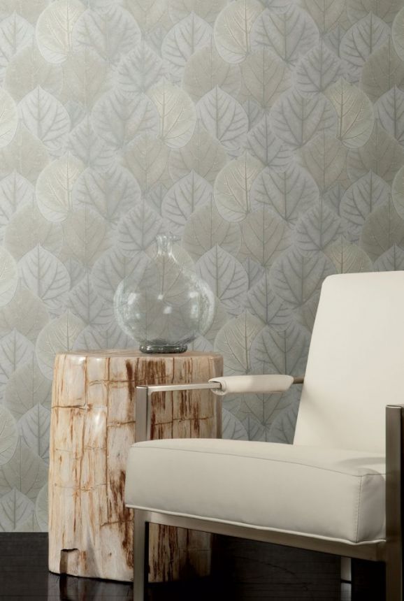 Šedostříbrná vliesová tapeta na zeď, listy OS4246, Modern Nature II, York Šedostříbrná vliesová tapeta na zeď, listy OS4246, Modern Nature II, York
