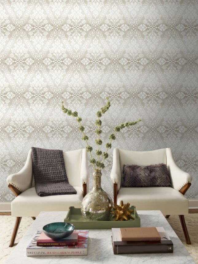 Šedobéžová předklížená tapeta, damaškový vzor, DM4933, Damask, York Šedobéžová předklížená tapeta, damaškový vzor, DM4933, Damask, York