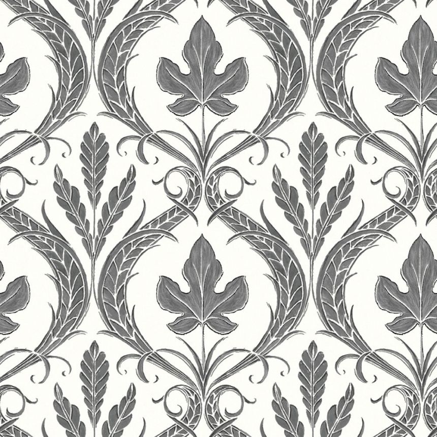 Černobílá předklížená tapeta na zeď, listy, ornamenty DM4926, Damask, York Černobílá předklížená tapeta na zeď, listy, ornamenty DM4926, Damask, York