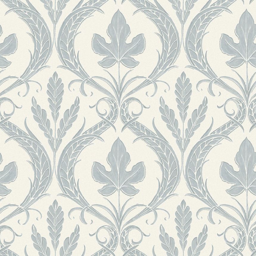 Šedobílá předklížená tapeta na zeď, listy, ornamenty DM4925, Damask, York Šedobílá předklížená tapeta na zeď, listy, ornamenty DM4925, Damask, York