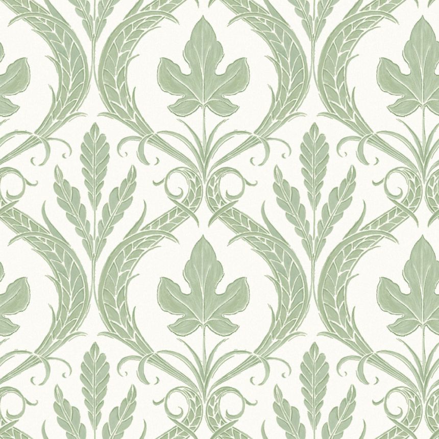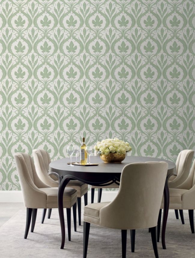 Zelenobílá předklížená tapeta, listy, ornamenty DM4921, Damask, York Zelenobílá předklížená tapeta, listy, ornamenty DM4921, Damask, York