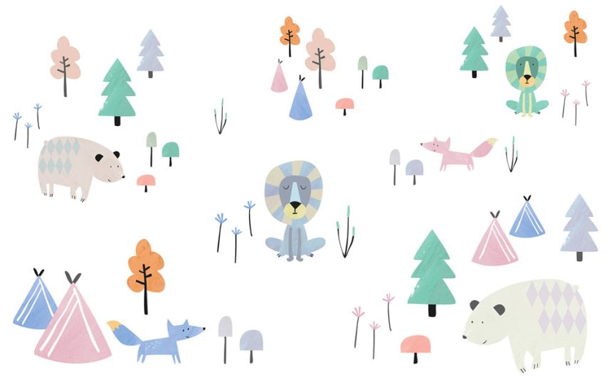 Samolepící kruhová obrazová tapeta Les, lesní zvířátka 159083, průměr 140 cm, Forest Friends, Esta