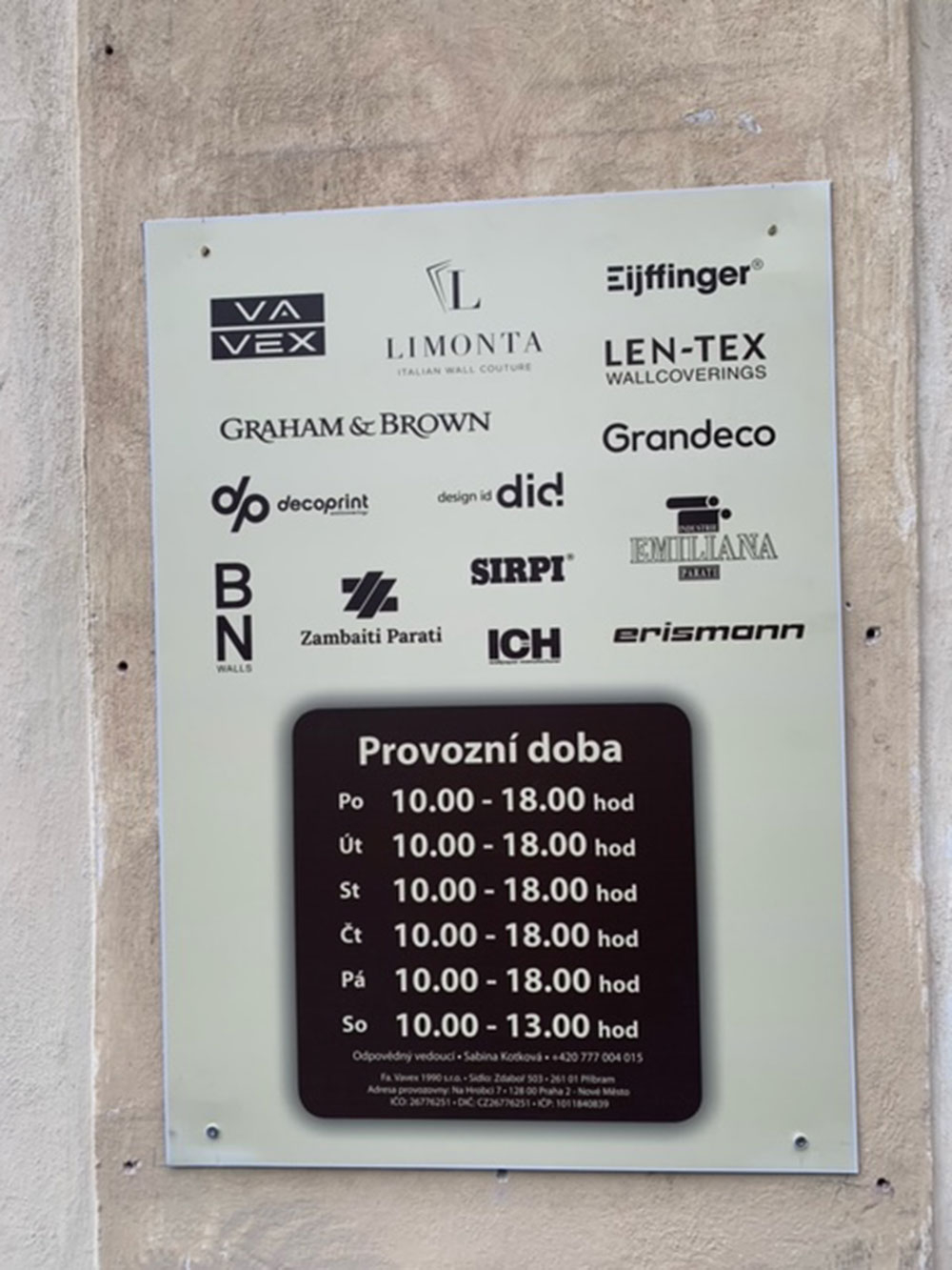 Specializovaná prodejna tapet, která se nachází v hlavním městě v Praze na Novém městě u řeky Vltavy.