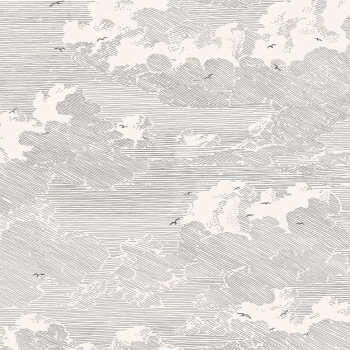 Černá malba oblohy s ptáčky na béžovém podkladu - vliesová tapeta.