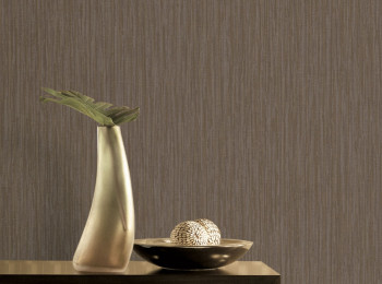 Vliesová, hnědá tapeta s metalickám leskem - struktura hrubší textilie.