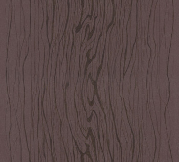 Efektní vzor struktury dřeva ve fialovo-hnědé a hnědo-zlaté barvě na vliesové tapetě.