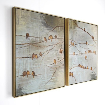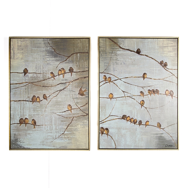2-dílný obraz s ptáky 102413, Flock Of Birds Handpainted Framed Canvas, Wall Art, Graham Brown