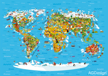 Vliesová dětská fototapeta na zeď - Mapa Světa - FTNS 2441, 360 x 270 cm, AG Design