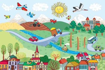 Veselá dětská fototapeta Vesnice, 360 x 270 cm. Vliesové tapety se snadno lepí, snadno strhávají.