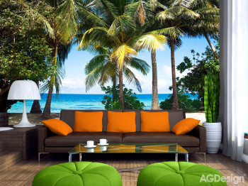 4 dílná vliesová fototapeta Moře, Palmy, 360 x 270 cm. Vliesové tapety se snadno lepí, snadno strhávají.