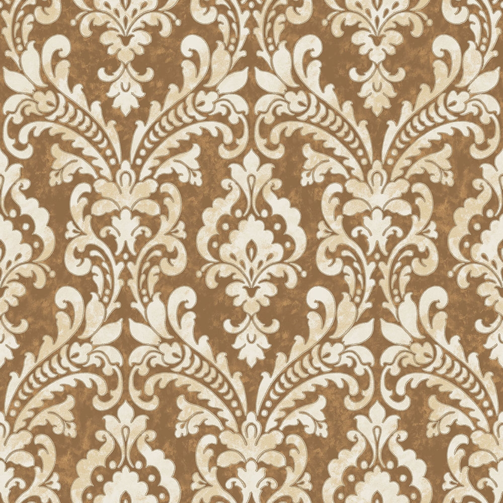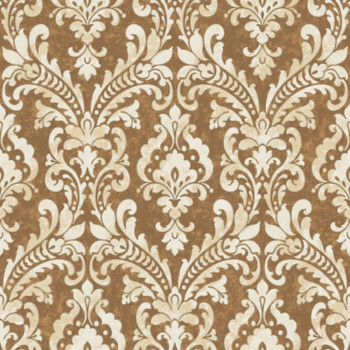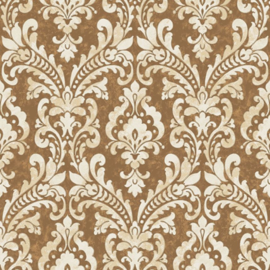 Vliesová tapeta se zlatě olemovaným vzorem v odstínech pololesklé metalické krémové a béžové, podklad pololesklý hnědo-zlatý.