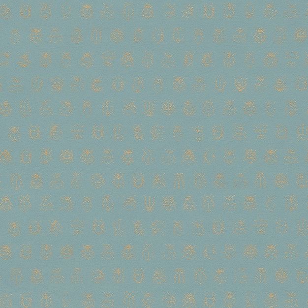 Pravidelný vzor se zlatými broučky na tyrkysové vliesové tapetě na zeď.
