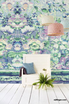 Krásná obrazová tapeta s květinovým, vzorem v modrých, zelených a tyrkysových odstínech. Tapeta je sice umístěna v katalogu s dětskými tapetami, ale je vhodná také k doplnění Vašeho interiéru obývacího pokoje či ložnice.