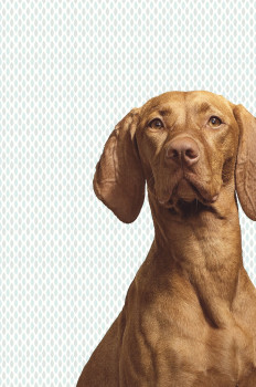 Něco pro milovníky psů - nádherná fototapeta loveckého psa s geometrickým vzorem pozadí v jemných pastelových barvách.