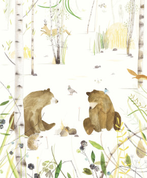 Medvědi nevědí? Zvířátka v březovém háji na obrazové tapetě s vliesovým podkladem.