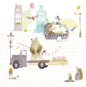 Zvířátka na výletě ve městě - obrazová tapeta pro nejmenší děti.