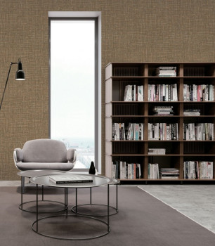 Vliesová tapeta - struktura hrubší textilie v odstínech terakota s prosvítajícím světle zlatým podkladem. Barvy a odlesky na tapetě se mění podle dopadu světla. Vliesové tapety s vinylovým povrchem, ideální tapeta do ložnice, nebo obývacího pokoje.