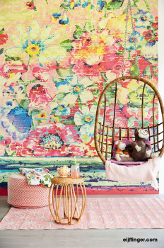 Bohatý květinový vzor - obrazová tapeta na vliesovém podkladu. Tapeta je sice v dětském katalogu, ale vhodná je i k umístění do interiéru obývacího pokoje či ložnice.