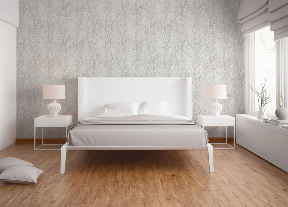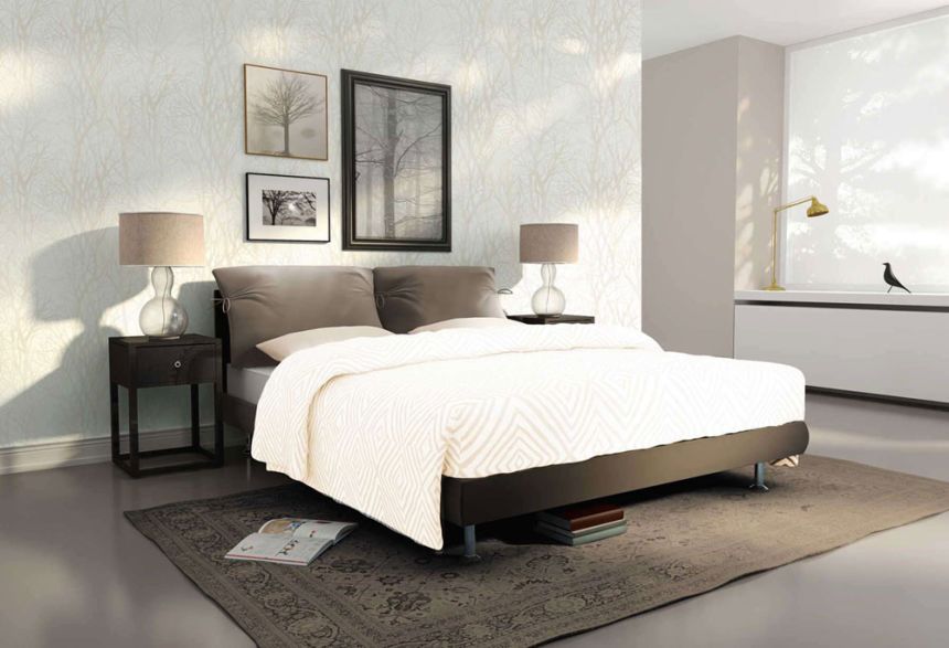 Přírodní motivy zútulní interier, přinesou klid a pohodu. Výrazný, jemně lesklý vzor větví na bílé vliesové tapetě.