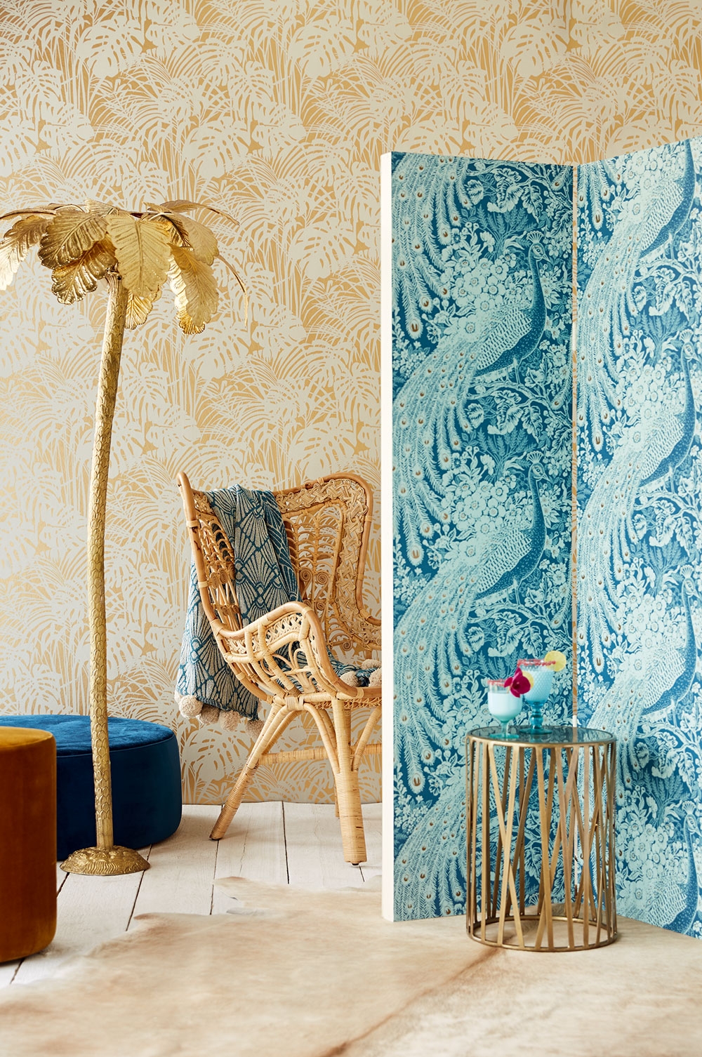 Elegantní vzor listu, energický páv, lesknoucí se šupiny, texturované pláně s třpytícími se tečkami a v různých odstínech zachycujících světlo. Od duhové fólie po luxusní korálky a sametové hejno. Od bohatě smaragdové po paví modř, tyrkysovou, třpytící se zlatou, temně perleťově fialovou, teplou bílou k chladně stříbrné. Každý výskyt světla vytváří na tapetách jedinečný efekt. Reflect pozvedne váš interiér jemnými odstíny a krásným třpytem.