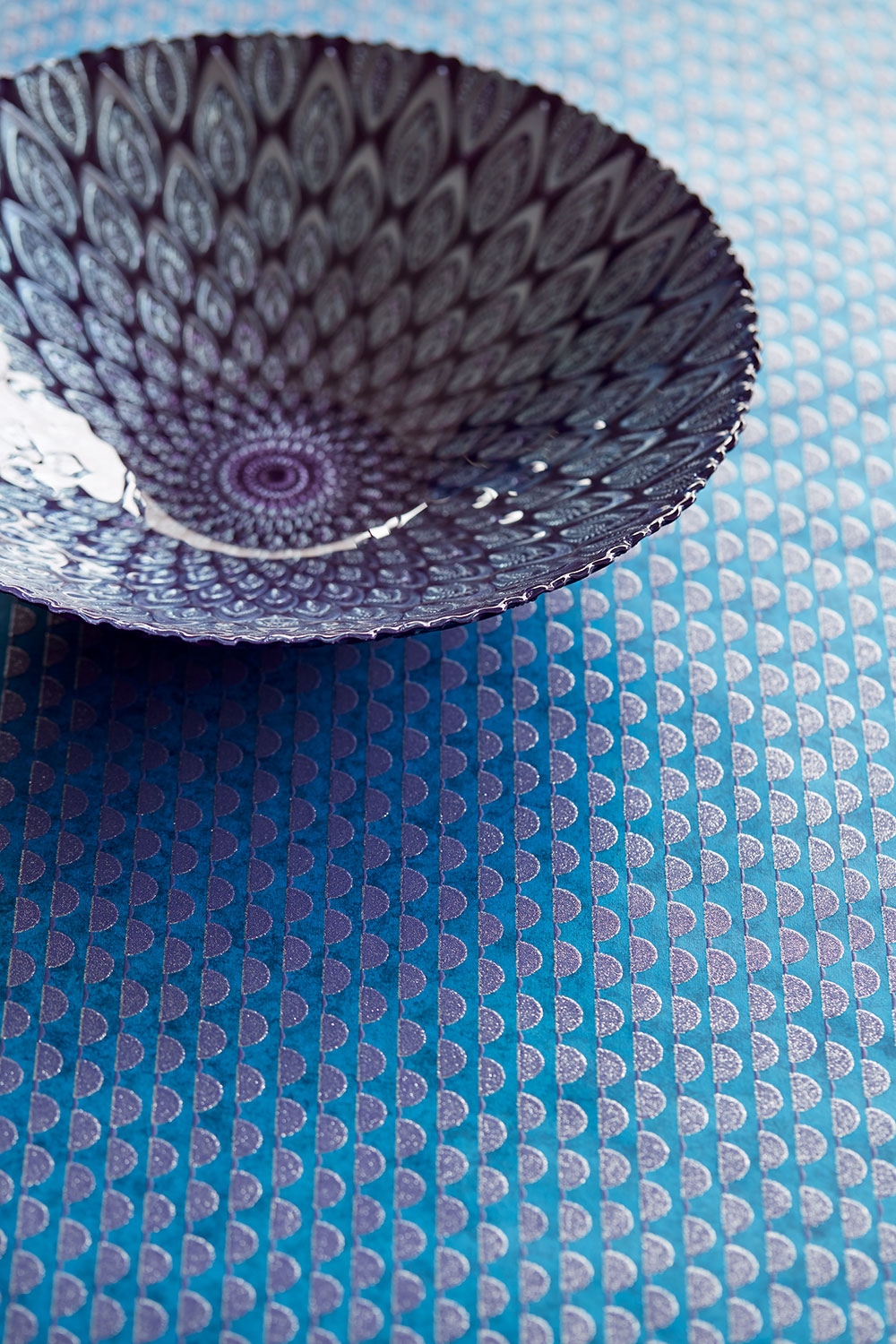 Jemně elegantní fialové třpytivé polokoule na metalické modré mramorované vliesové tapetě. Reflect = zrcadlení. Zrcadlení je kolekce vliesových tapet plná iluzí s luxusním designem v zářivých barvách, pozvedne váš interiér jemnými odstíny a krásným třpytem. Každý paprsek světla vytváří překrásný efekt na těchto tapetách. Vše to začalo, když se designérka této kolekce podívala na dno bazénu. Viděla sluneční světlo tančící na jeho dně a vytvářející krásné vzory. Kolekce se zrcadlením jako inspirací byla stvořena. Výsledkem jsou tapety na zeď, které Vám přinesou spoustu radosti.