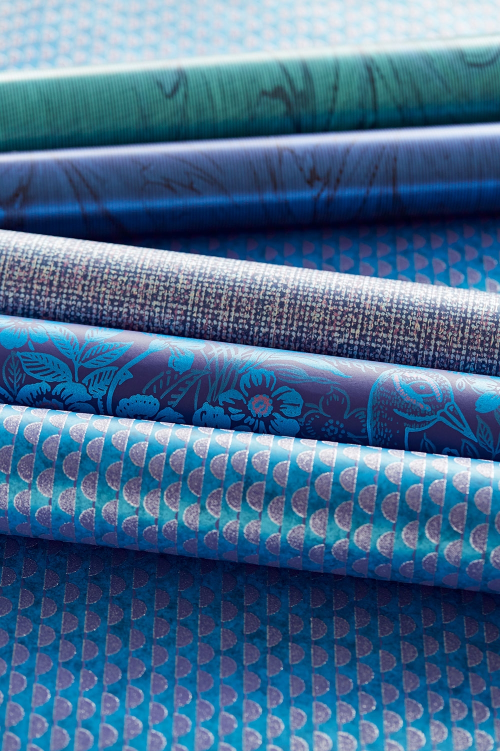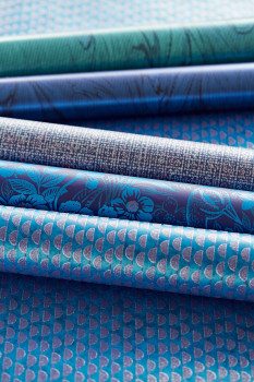 Elegantní vzor listu, energický páv, lesknoucí se šupiny, texturované pláně s třpytícími se tečkami a v různých odstínech zachycujících světlo. Od duhové fólie po luxusní korálky a sametové hejno. Od bohatě smaragdové po paví modř, tyrkysovou, třpytící se zlatou, temně perleťově fialovou, teplou bílou k chladně stříbrné. Každý výskyt světla vytváří na tapetách jedinečný efekt. Reflect pozvedne váš interiér jemnými odstíny a krásným třpytem.