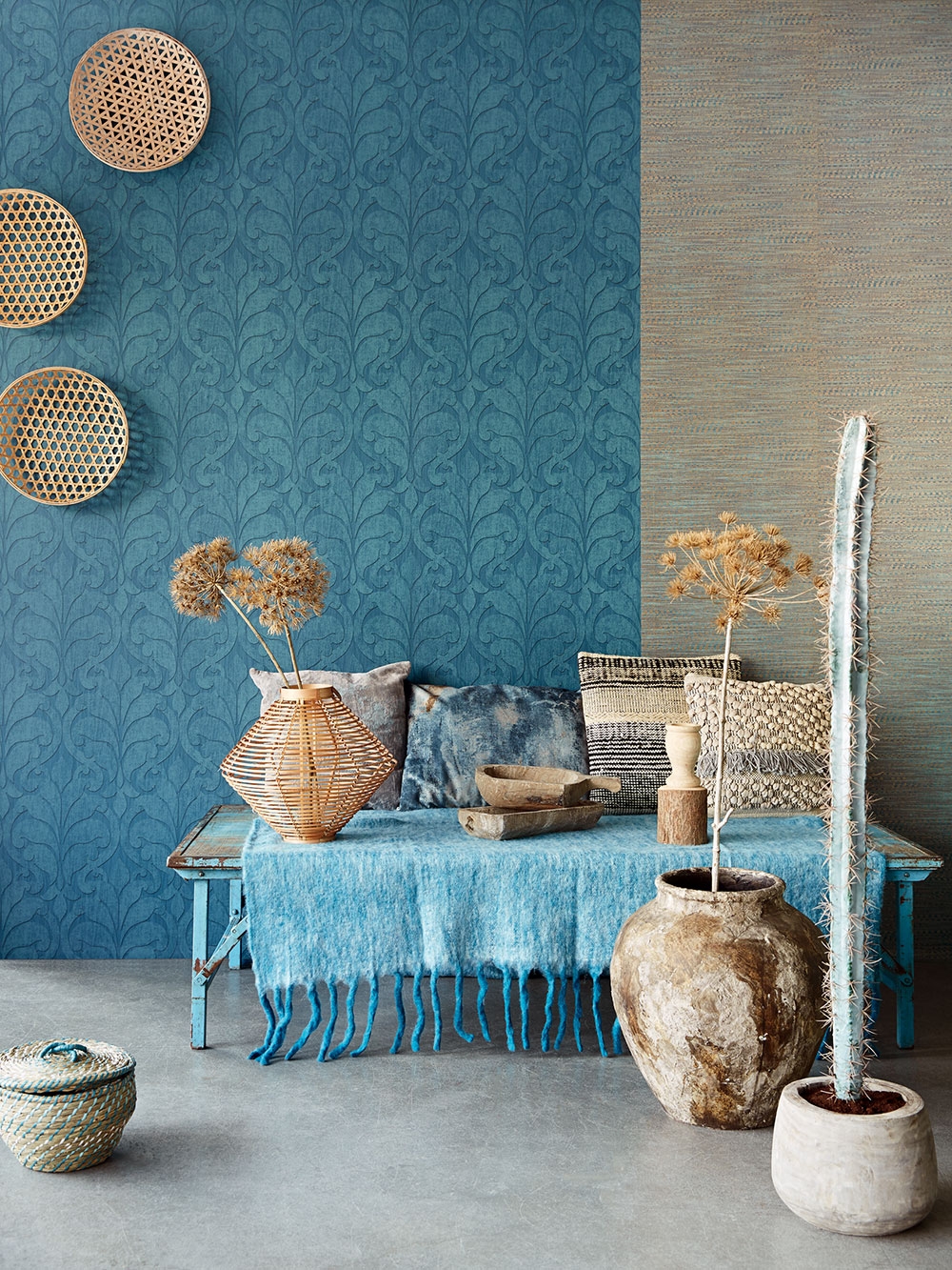 Krásné a skutečné vzory, jež jsou použity na tapetách - jako přírodní tkanina, pruhy připomínající berberský koberec, bohémské květiny a spletitý design i kostky vzorů se vzhledem tkané látky. Mírně se třpytící vzory tapet jemně kontrastující k designu jevícímu se jako hliněné stěny. Od mahagonu k hnědé, tyrkysové terakotě a od indiga až k písečné Sahaře, šedé hlíně a slonovině – i tyto barvy najdete na luxusních vliesových tapetách z katalogu Siroc.
