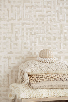 Geometrický vzorek v krémové a béžové barvě na vliesové tapetě se stříbrnými detaily. Vliesové tapety Siroc cítí tlukoucí africké srdce, které se rozeznívá v této rozmanité kolekci luxusních tapet. Rytmus kontinentu je zachycen ve vibrujících vzorech těchto tapet se spoustou teplých, čistých a tlumených barev. Nechte se unášet nezkrotným pouštním větrem. Obdivujte úžasnou krajinu, ohromné pobřeží, divokou přírodu a domorodé vesnice. Ponořte se do hluku bazaru, plného tradičního umění, světlých a tmavých barev a exotických vůní.