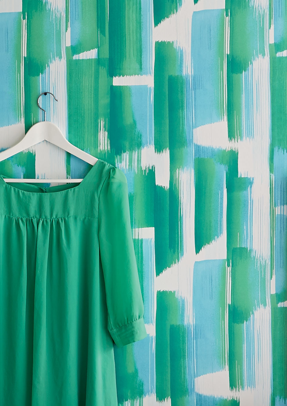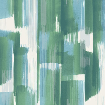 Zelené a tyrkysové tahy štětcem na vliesové tapetě na zeď. Efekty lesk/mat.