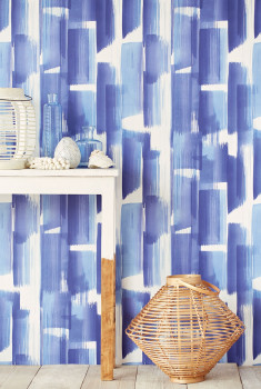 Modré tahy štětcem na vliesové tapetě na zeď. Efekt lesk/mat.