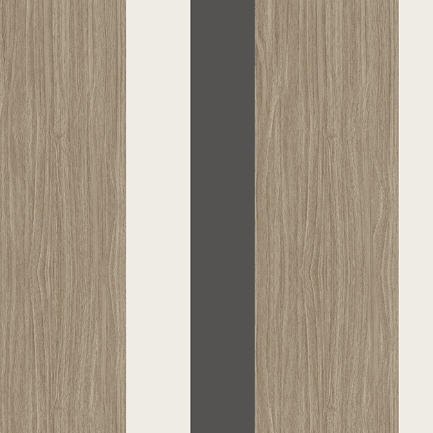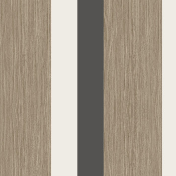 Šedo-černé, bílé a žíhané hnědé pruhy ( struktura dřeva ) na vliesové tapetě na zeď.