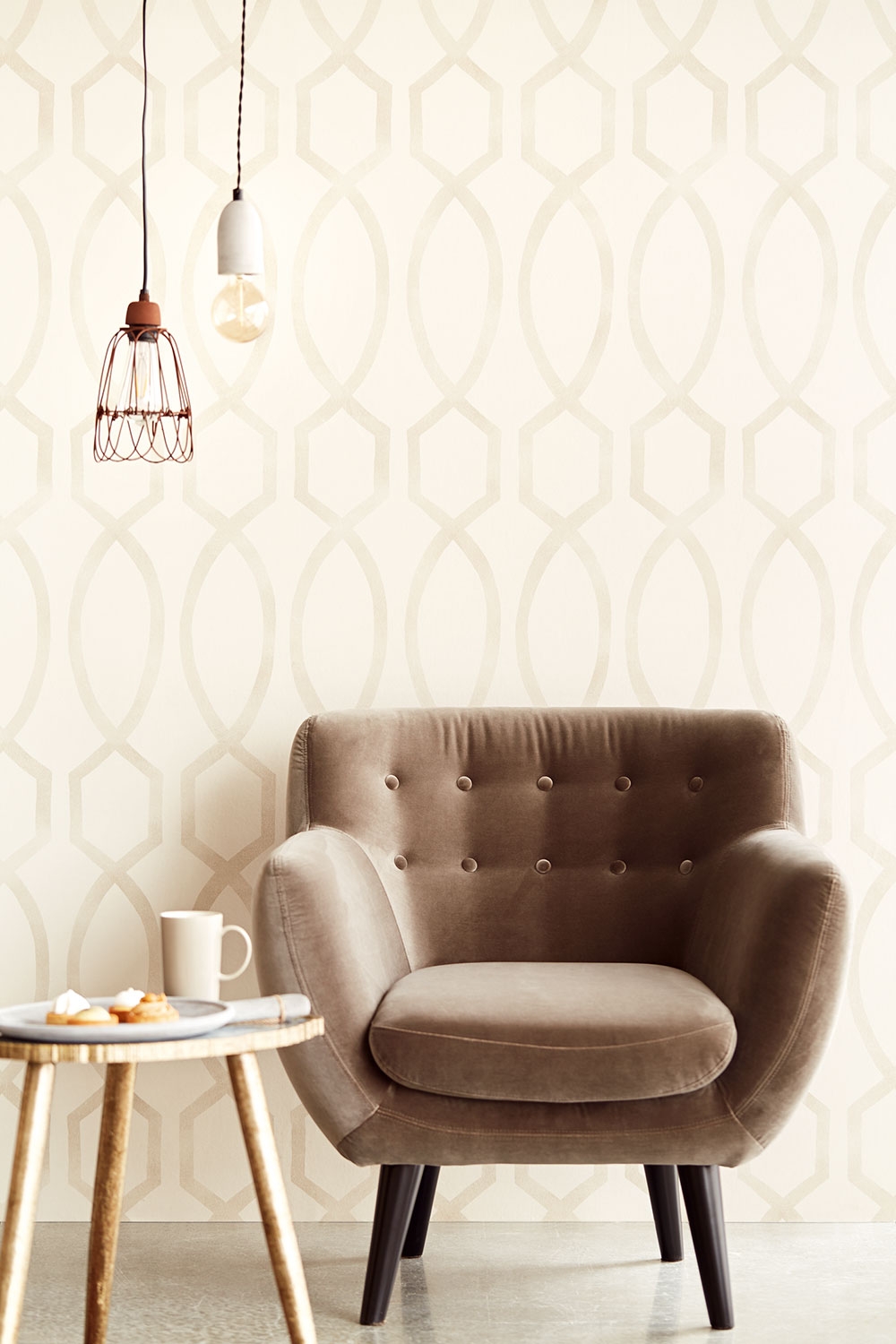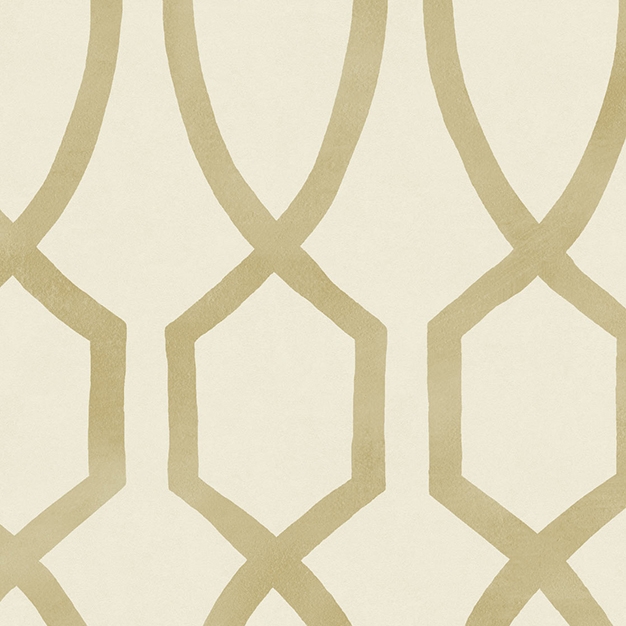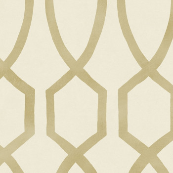 Zlato-béžové pololesklé geometrické vzory na krémové vliesové tapetě na zeď.
