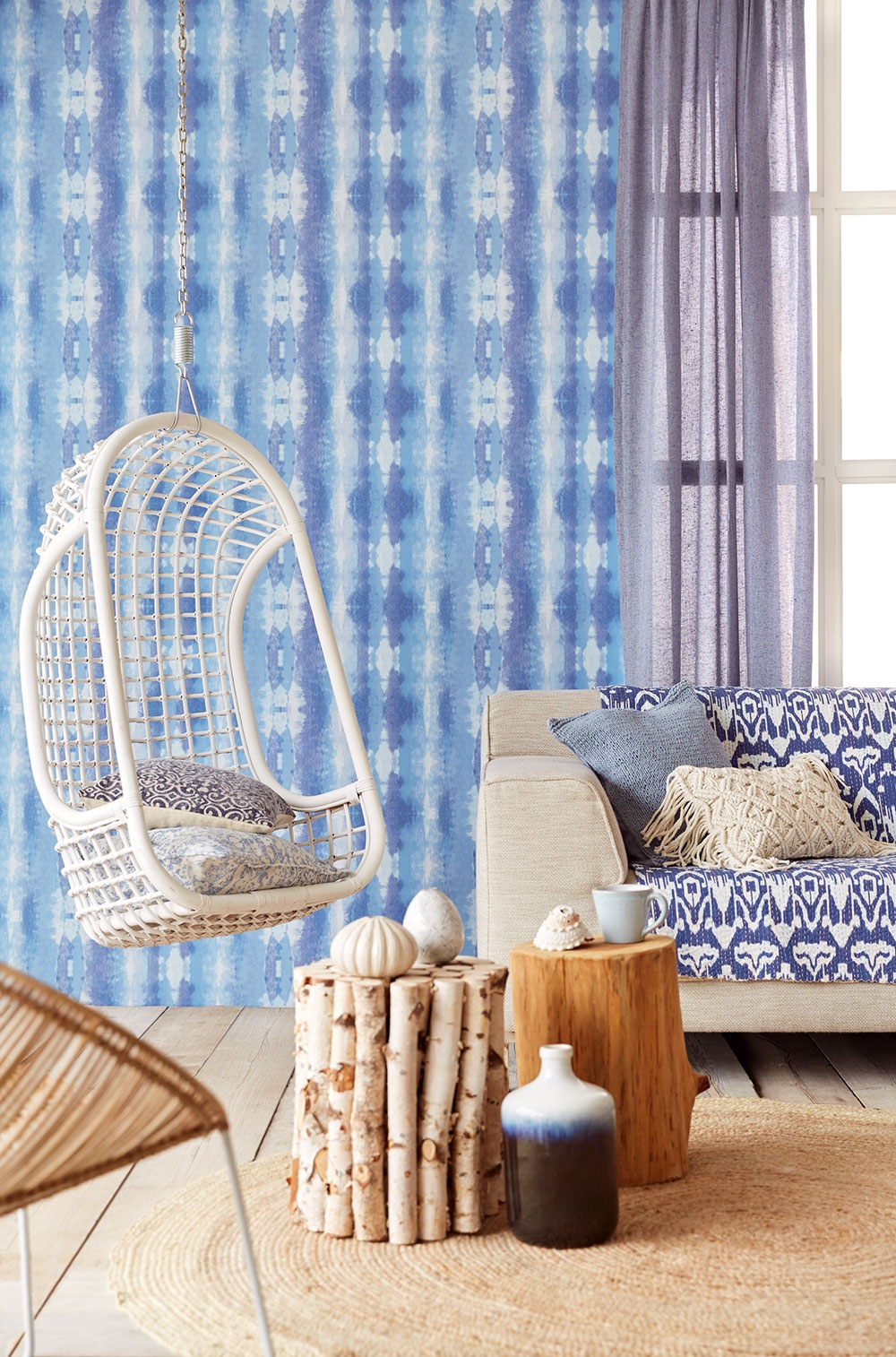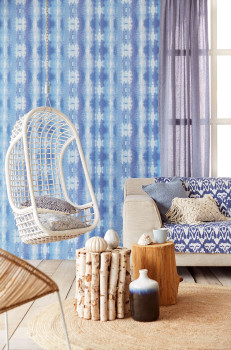 Abstraktní vzory v modrých odstínech na vliesové tapetě.