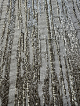 Luxusní vliesové tapety s vinylovým povrchem - design hedvábné textilie s jemným pololeskem s metalickými plastickými texturami v odstínech šedo-béžové a zlaté. Barvy a odlesky na tapetě se mění podle dopadu světla.