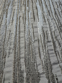 Luxusní vliesové tapety s vinylovým povrchem - design hedvábné textilie s jemným pololeskem s metalickými plastickými texturami v odstínech šedo-stříbrné. Barvy a odlesky na tapetě se mění podle dopadu světla.