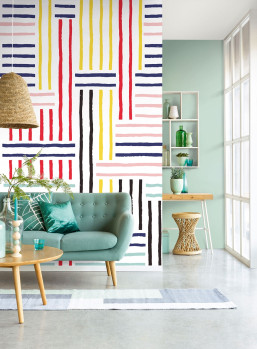 Nepravidelné barevné linky na vliesovém tapetovém panelu.